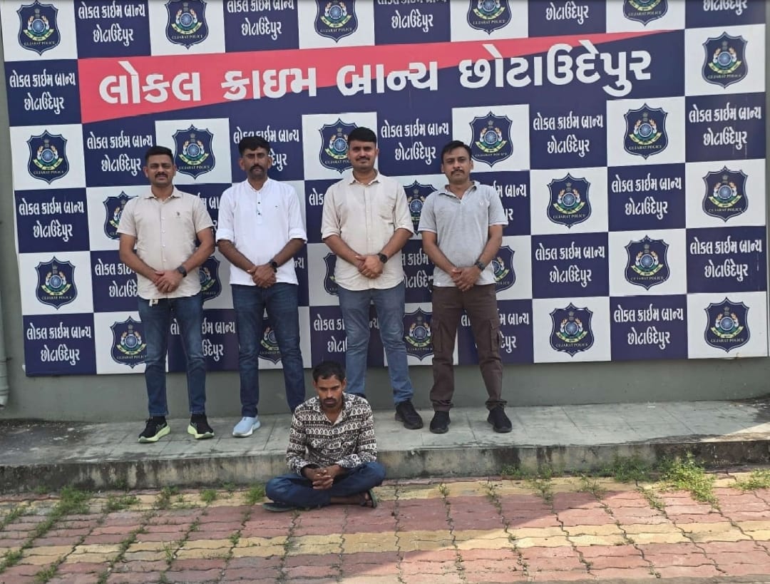 જે અન્વયે એમ.એફ.ડામોર પોલીસ ઇન્સ્પેકટર લોકલ ક્રાઇમ બ્રાન્ચ છોટાઉદેપુર નાઓએ એલ.સી.બી સ્ટાફના પોલીસ કર્મચારીઓને સુચના આપેલ જે અન્વયે એલ.સી.બી સ્ટાફના પોલીસ કર્મચારીઓ છોટાઉદેપુર પોલીસ સ્ટેશન વિસ્તારમાં પેટ્રોલીંગમાં હતાં તે દરમ્યાન અંગત બાતમીદાર થકી ચોક્કસ બાતમી હકીકત મળેલ કે, (૧) જેતપુરપાવી પોલીસ સ્ટેશન એ.પાર્ટ ગુ.ર.નં.૫૬૧/૨૦૨૦ ઇ.પી.કો કલમ ૩૭૯,૧૧૪ (૨) કવાંટ પોલીસ સ્ટેશન સી. પાર્ટ ગુ.ર.નં.૧૨૦૨/૨૦૨૪ પ્રોહિ કલમ ૬૫-એ-ઇ,૯૮(૨),૮૧,૮૩ (૩) કરજણ પોલીસ સ્ટેશન સી.પાર્ટ ગુ.ર.નં.૧૦૩૯/૨૦૨૪ પ્રોહિ કલમ ૬૫-એ-ઇ,૯૮(૨),૮૧,૮૩ મુજબના ગુનાના કામે નાસતો ફરતો આરોપી પાનવડ થી છોટાઉદેપુર બાજુ જનાર છે અને તેણે બદનમાં કાળા કલરનું સફેદ લાઇનીંગ વાળુ આખી બાઇનું શર્ટ તથા કમરે ભુરા કલરનું જીન્સ પેન્ટ પહેરેલ છે તેવી બાતમી હકિકત આધારે બાતમી હકીકતથી વાકેફ કરી છોટાઉદેપુર જિલ્લા પંચાયતની સામે રોડ ઉપર જતા બાતમી હકીકતમાં જણાવ્યા મુજબના વર્ણનવાળો માણસ મળી આવતા તેને કોર્ડન કરી પકડી લીધેલ અને પકડાયેલ ઈસમને નામ-ઠામ પૂછતા તેણે પોતાનું નામ રાજુભાઇ વાગજ્યાભાઇ કલેશ ઉ.વ.૩૨ રહે.છોટી ઉતાવળી બૈડી ફળીયા તા.સોંઢવા જી.અલીરાજપુર (મધ્યપ્રદેશ) નાનો હોવાનું જણાવેલ સદરીની અંગ ઝડતી કરતા તેના ખીસ્સામાથી એક ભુરા કલરનો વિવો કંપનીનો ટચસ્ક્રીન મોબાઇલ ફોન મળી આવેલ જેનો સિમ નંબર ૭૨૪૭૨૧૨૧૯૦ નો છે જેની કિંમત રૂ.૫,૦૦૦/- ગણી શકાય સદરીને પકડાયેલ ઇસમને ગુના બાબતે પુછપરછ કરતા હકીકત જણાવેલ કે આજથી આશરે પાંચ વર્ષ પહેલા પાવી જેતપુર વિસ્તારમાંથી એક મોટર સાયકલની ચોરી કરેલ હતી તેમાં તેનું નામ ખુલેલે હતું અને આજથી આશરે એકાદ વર્ષ પહેલા તેમનો મિત્ર અરવિંદભાઇ કમસિંગભાઇ ભીલ રહે.બોરચાપડા નાઓ તેમના કબ્જાની બોલેરો પિક અપ ગાડીમાં