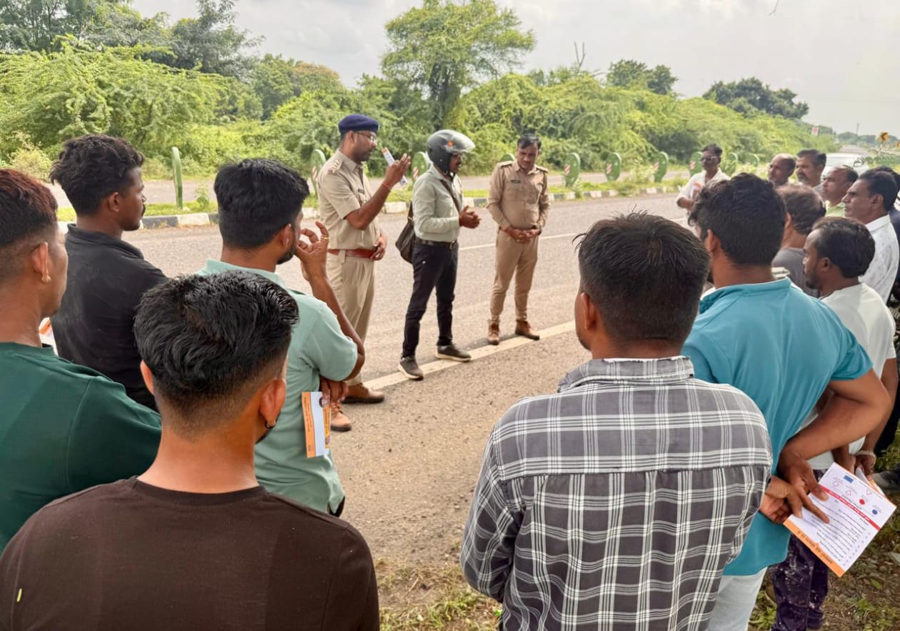 જિલ્લામાં માર્ગ અકસ્માતોના નિવારણ અને માર્ગ સલામતી પ્રત્યે લોકો-વાહનચાલકોમાં જાગૃતિ ફેલાવવાના હેતુથી રાજપીપળા ARTO કચેરીના ઇન્સ્પેક્ટર એમ.પી. સુથાર તથા પી.બી. પટેલ દ્વારા જાહેર માર્ગ પર જનજાગૃતિ કાર્યક્રમ યોજાયો હતો.