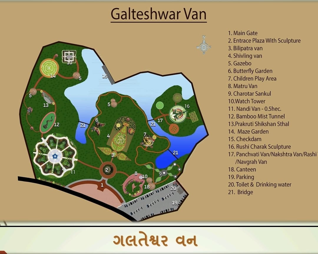 મધ્ય ગુજરાતમાં તૈયાર થયેલા રાજ્યના ૨૪માં સાંસ્કૃતિક “ગળતેશ્વર વન”માં નવા અભિગમ સાથે આ વનમાં આકર્ષક મુખ્ય દ્વાર, પ્રવેશ પરિસર, બિલિપત્ર વન, શિવલિંગ વન, શિવમૂર્તિ, ગઝેબો, બટરફ્લાય ગાર્ડન, બાળ ક્રિડાંગણ, માતૃવન, ચરોતર વિસ્તારના મહાનુભાવોને આવરી લેતું ચરોતર સંકુલ, ગળતેશ્વર ડાયરોમા, વોચ ટાવર, દુર્લભ પ્રજાતિના રોપાનું વાવેતર ધરાવતું નંદી વન, બામ્બુ મિસ્ટ ટનલ, પ્રાકૃતિક શિક્ષણ સ્થળ, મેઝ ગાર્ડન, ચેકડેમ, સારસ પંખી સ્કલ્પચર, આરોગ્ય વન, ચરક વન-પ્રતિમા, પીપળ, બેલ, આંબળા, વટ અને અશોક એમ પાંચ વૃક્ષ ધરાવતું પંચવટી વન, ગ્રહમાર્ગ કે સૂર્યમાર્ગ પર
