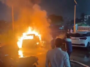 બનાવની વિગત મુજબ, એક કારચાલક પાર્કિંગમાંથી બહાર નીકળી રહ્યો હતો ત્યારે અચાનક તેની કારમાંથી ધુમાડા નીકળવા લાગ્યા અને થોડી જ વારમાં આગની જ્વાળાઓ ફાટી નીકળી હતી. ડ્રાઇવરે સમયસૂચકતા વાપરીને તાત્કાલિક કારમાંથી બહાર નીકળી જતાં તેનો આબાદ બચાવ થયો હતો. આગ એટલી ભયાનક હતી કે બાજુમાં પાર્ક કરેલી બીજી એક કાર પણ તેની ઝપેટમાં આવી ગઈ હતી અને બંને કાર સળગવા લાગી હતી.