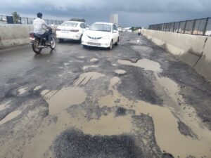 ડભોઇ સરિતા રેલ્વે ઓવર બ્રિજ પર થોડાક જ વરસાદમાં ફરી રોડ ઉપર આઠમી વખતે સળિયા દેખાવા લાગ્યા ટુ વ્હીલર તાલુકો ની ગાડીમાં ફસાઈ રહ્યા છે
