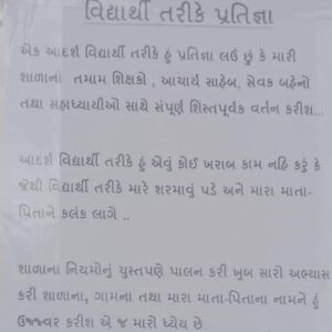 આચાર્ય હિતેશ કુમારના માર્ગદર્શન હેઠળ, જુંજેરા વિદ્યાલયમાં છેલ્લા બે વર્ષથી વિદ્યાર્થીઓની સુરક્ષા અને શિસ્ત જાળવવા માટે દરરોજ પ્રાર્થના બાદ બાળકોને એક ખાસ પ્રતિજ્ઞા લેવડાવવામાં આવે છે. આ પ્રતિજ્ઞા દ્વારા વિદ્યાર્થીઓ શિસ્તપૂર્વક વર્તન કરવાનો અને એવું કોઈ કામ ન કરવાનો સંકલ્પ લે છે, જેનાથી તેમના માતા-પિતા અને શાળાનું નામ ખરાબ થાય.