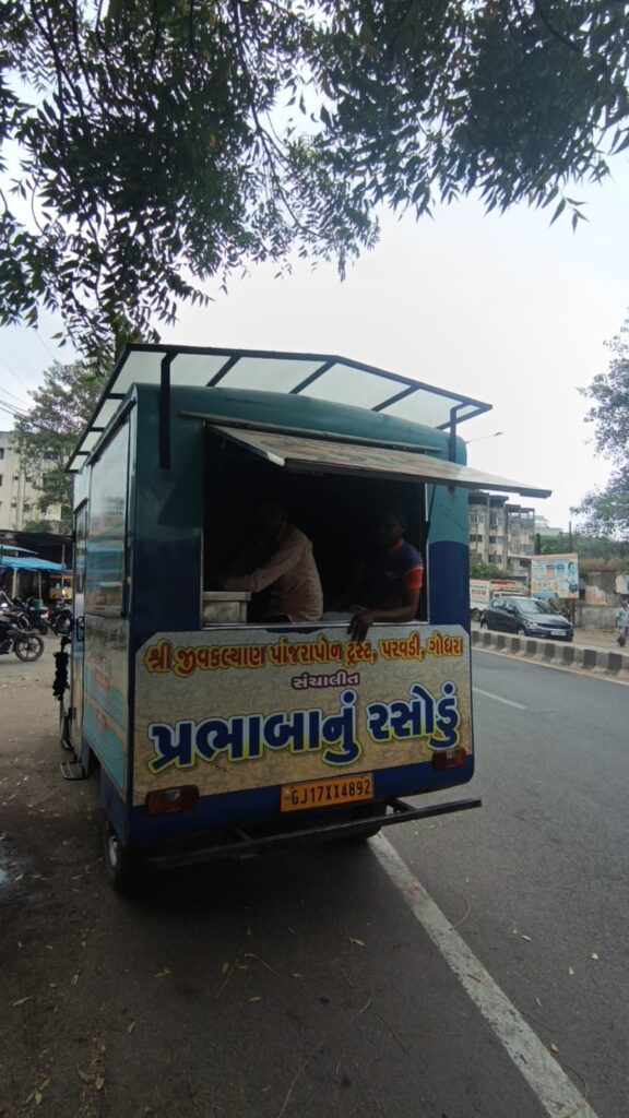 પંચમહાલ જીલ્લાના ગોધરા શહેરના સામાજીક અગ્રણી અને સેવાદાર જંયતિભાઈ શેઠ દ્વારા આજથી ત્રણ વરસ પહેલા સેવાકીય પ્રવૃતિનો આંરભ કરવામા આવ્યો હતો. પ્રભાબાનું રસોડુ . નામ સાંભળતા એવુ લાગે કે આ કોઈ રસોડાની વાત હશે, પણ એવુ નથી આ રસોડુ બધા કરતા અલગ છે. અને આ રસોડુ હરતુ ફરતુ છે.જે જરુરિયાત મંદ લોકોને વિનામુલ્યે ભોજન પુરુ પાડે છે. પરવ઼ડી ખાતે આવેલા રસોડમાં સવારે ભોજન બનાવામા આવે છે. ત્યારબાદ જે ભોજન રથ બનાવામા આવ્યો હોય તેમાં રસોઈ મુકવામા આવેછે. રસોઈમા દાળ,ભાત,શાક,રોટલી સહિતની સાત્વિક ગુજરાતી વાનગી બનાવામા આવે છે. ગોધરા શહેરમા આવેલા સાત જેટલા સેન્ટરો નક્કી કરવામા આવ્યા છે.ત્યા આ ભોજન રથ સાથે કર્મચારીઓ જાય છે. અને લોકોને ભોજન પુરુ પાડે છે. ગોધરામા આવેલી હોસ્પિટલોમા દર્દીઓ તેમજ તેની સાથે રહેલા સગાવહાલાને,ગોધરાના રનબસેરા ખાતે રહેતા ગરીબ પરિવારોને વિનામુલ્યે ભોજન પુરુ પાડવામા આવે છે.