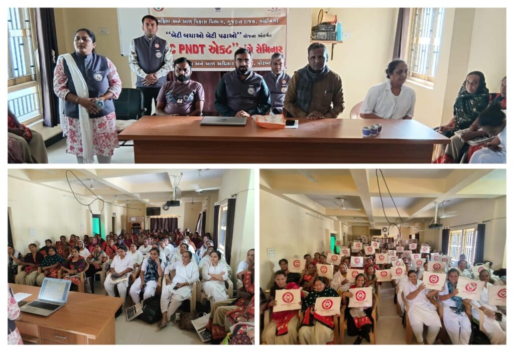 મહિલા અને બાળ અધિકારી કચેરી, પોરબંદર દ્વારા “બેટી બચાઓ બેટી પઢાઓ” યોજના અંતર્ગત કુતિયાણા તાલુકાના આરોગ્ય કાર્યકરો તથા આશા બહેનો માટે PC & PNDT એક્ટ અંગે જાગૃતિ સેમિનારનું આયોજન તાલુકા આરોગ્ય કચેરી, કુતિયાણા ખાતે કરવામાં આવ્યું હતું.