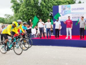 “હર ગલી, હર મેદાન, ખેલે સારા હિન્દુસ્તાન, ખેલે ભી ઔર ખીલે ભી” થીમ આધારે રાજ્યની સાથે બનાસકાંઠા જિલ્લામાં ત્રી – દિવસીય રાષ્ટ્રીય રમતગમત દિવસ અંતર્ગત સ્પર્ધાના ત્રીજા દિવસે બાલારામ થી અંબાજી ગબ્બર સુધી સાયક્લોથોન સ્પર્ધાનું આયોજન કરાયું હતું. બનાસકાંઠા જિલ્લા કલેકટર મિહિર પટેલે લીલીઝંડી આપીને સાયકલ સ્પર્ધાનો પ્રારંભ કરાવ્યો હતો.