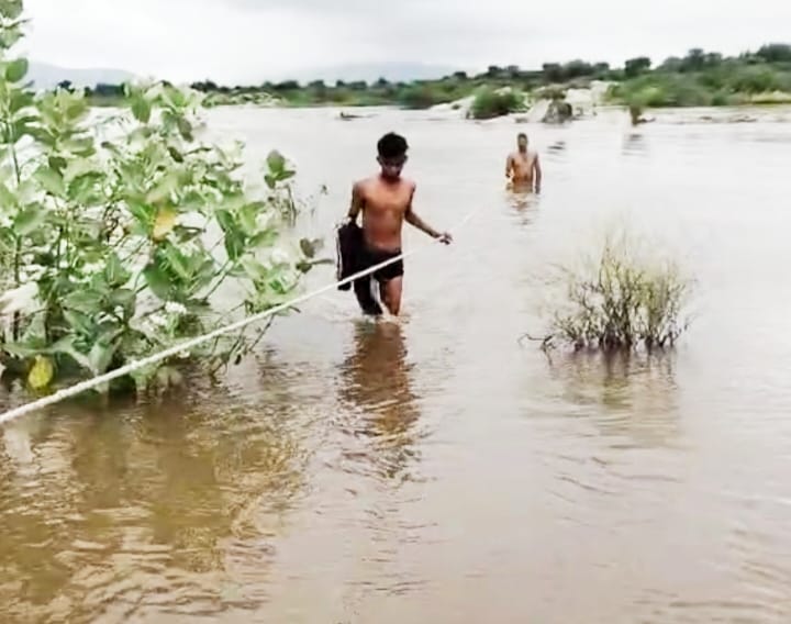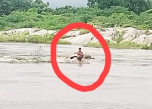 સ્નાન કરતી વખતે નદીમા પાણીનો પ્રવાહ અચાનક વધી ગયો અને બંને વિદ્યાર્થીઓ ડરી ગયા અને એક પથ્થર પર બેસી ગયો..