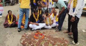રાજપીપલા સ્ટેશન રોડ પર આમ આદમી પાર્ટીની ટીમ દ્વારા ખાડા પૂજન કરીને તંત્ર સામે અનોખો વિરોધ પ્રગટ કર્યો હતો. જેમાં ભગવાન આ ભાજપના નેતાઓ અને તંત્રને સદ્બુદ્ધિ આપે તેવી પ્રભુને પ્રાર્થના કરવામાં આવી હતી.