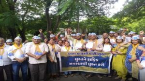 સુરતમાં મેટ્રો રેલ પ્રોજેક્ટના કારણે શહેરના અનેક વિસ્તારોમાં રસ્તાઓ જર્જરિત બન્યા છે અને ટ્રાફિકની સમસ્યાઓ તીવ્ર બની રહી છે. આ મુદ્દે આમ આદમી પાર્ટી (AAP)એ સુરત પોલીસ કમિશ્નરને આવેદન પાઠવીને તાત્કાલિક કાર્યવાહી કરવાની માંગ કરી છે.શહેર પ્રમુખ ધર્મેશ ભંડેરીના નેતૃત્વ હેઠળ અપાયેલા આવેદનમાં જણાવાયું કે મેટ્રોના કામના કારણે અનેક રસ્તાઓ બે વર્ષથી વધુ સમયથી બંધ છે, બેરિકેટિંગને કારણે રસ્તાઓ સાંકડા થયા છે, અને યોગ્ય ટ્રાફિક સંકલનના અભાવમાં વાહનચાલકો તથા વેપારીઓ મુશ્કેલીમાં મુકાઈ રહ્યા છે.
