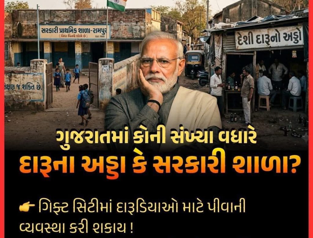 ગુજરાતમાં કહેવાતી દારૂબંધી વચ્ચે ગલીએ ગલીએ દેશી દારૂના અડ્ડા ધમધમી રહ્યા છે. પણ સવાલ એ છે કે આ અડ્ડાઓ કોના આશીર્વાદથી ચાલે છે? શું સરકાર ખરેખર ઈચ્છે છે કે યુવાધન નશામાં અને અંધશ્રદ્ધામાં ડૂબેલું રહે? કારણ કે, જેટલી જનતા ‘અંધભક્ત’ બની રહેશે, એટલી જ સત્તાની ખુરશી સલામત રહેશે.