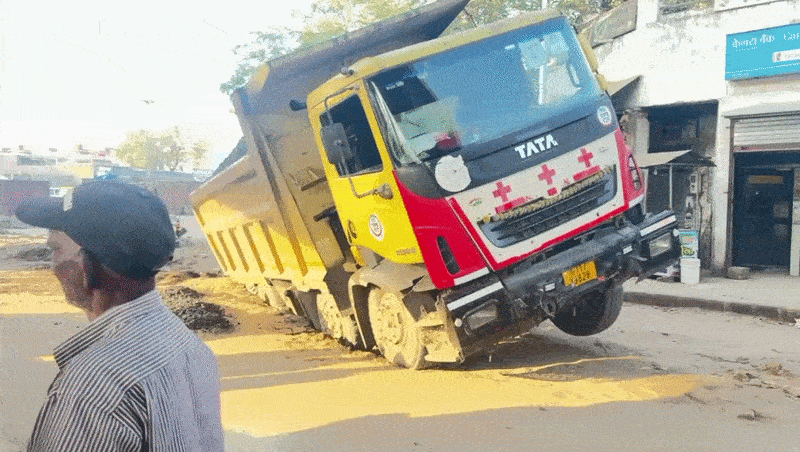 AHMEDABAD : AMCનું ડમ્પર જ ખાડામાં ફસાયું, રસ્તા પર માત્ર માટી નાખીને મનાયો હતો સંતોષ