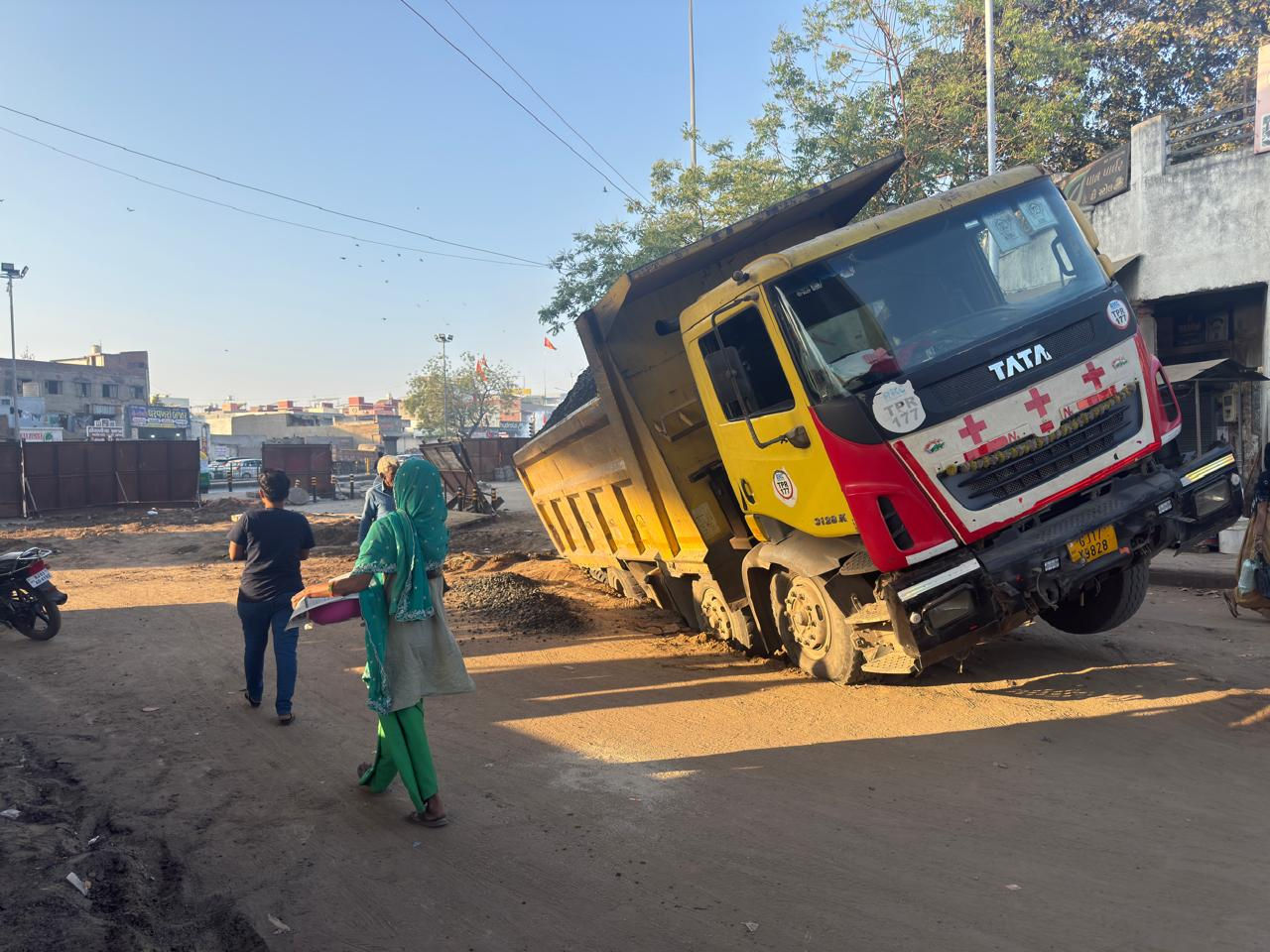 AHMEDABAD : AMCનું ડમ્પર જ ખાડામાં ફસાયું, રસ્તા પર માત્ર માટી નાખીને મનાયો હતો સંતોષ
