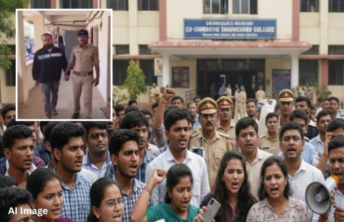 અરવલ્લી જિલ્લાના મોડાસામાં આવેલી સહકારી ઈજનેરી કોલેજમાં એક ગંભીર ઘટના સામે આવી છે, જ્યાં કોલેજના પ્રોફેસર દ્વારા ત્રણ વિદ્યાર્થિનીઓને વૉટ્સએપ મારફતે બિભત્સ મેસેજ મોકલવામાં આવ્યા હોવાનો વિવાદ વકર્યો હતો. વિદ્યાર્થીઓ અને વિદ્યાર્થિનીઓએ આ લંપટ પ્રોફેસર સામે ઉગ્ર દેખાવો કરીને ‘વી વોન્ટ જસ્ટીસ’ના સૂત્રોચ્ચાર કર્યાં હતા. વિદ્યાર્થીઓના ભારે રોષને પગલે પોલીસે તાત્કાલિક કાર્યવાહી કરીને આરોપી પ્રોફેસર મનીષ ચૌહાણની ધરપકડ કરી લીધી છે.