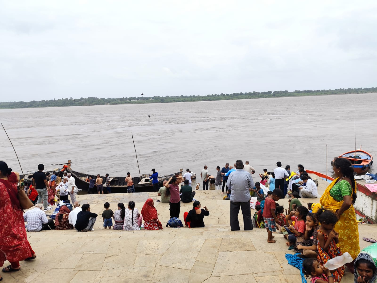 ચાણોદ ખાતે નર્મદા ઓરસંગ માં ઘોડાપૂર આવતાં સુપ્રસિદ્ધ મલ્હારરાવ ઘાટ અડધો પૂર્ણ પ્રવાહ ગરક થઈ ગયો