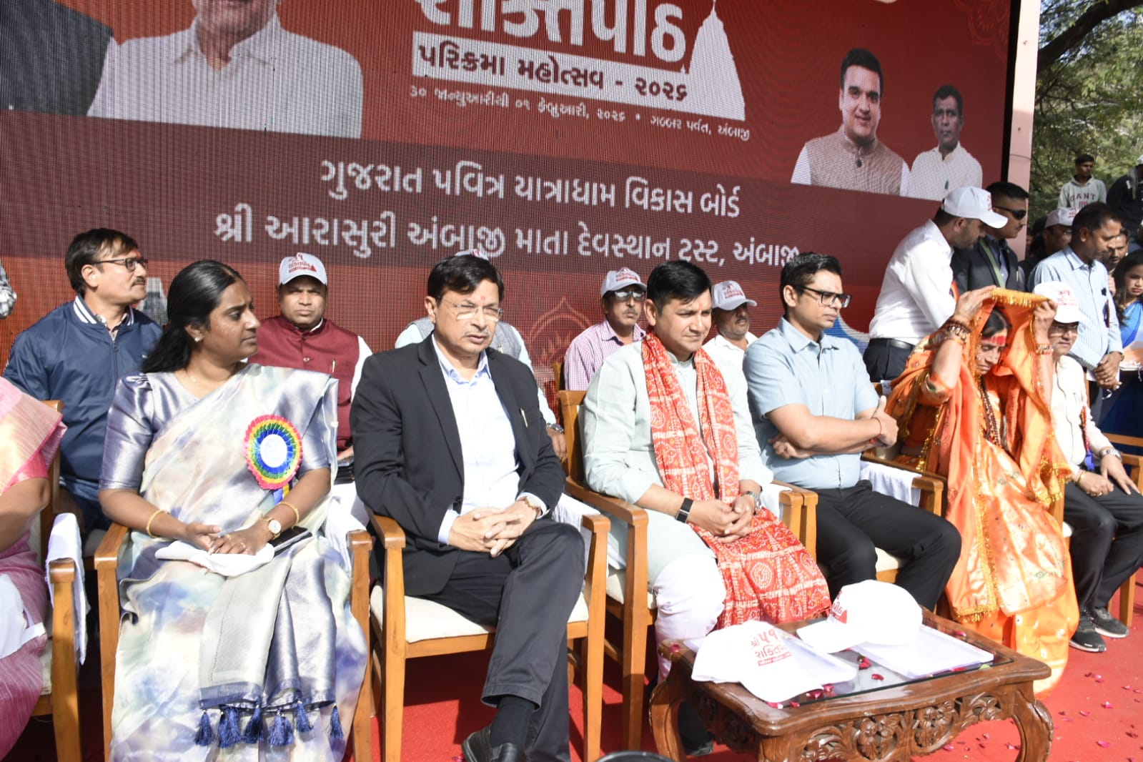 કાર્યક્રમની શરૂઆતમાં જિલ્લા કલેક્ટરશ્રી મિહિર પટેલે ઉપસ્થિત મહાનુભાવો, સાધુ-સંતો અને માઈભક્તોનું શાબ્દિક સ્વાગત કરતા અંબાજી ધામની પવિત્રતા અને ધાર્મિક મહત્તાનો મહિમા અંગે માહિતી આપી હતી. આ ભવ્ય મહોત્સવમાં મોટી સંખ્યામાં સાધુ-સંતો, પદાધિકારીઓ, અધિકારીશ્રીઓ તથા હજારો શ્રદ્ધાળુઓ ઉમટ્યા હતા, જેના કારણે સમગ્ર અંબાજી ધામ ભક્તિ અને આસ્થાના રંગે રંગાયું છે.