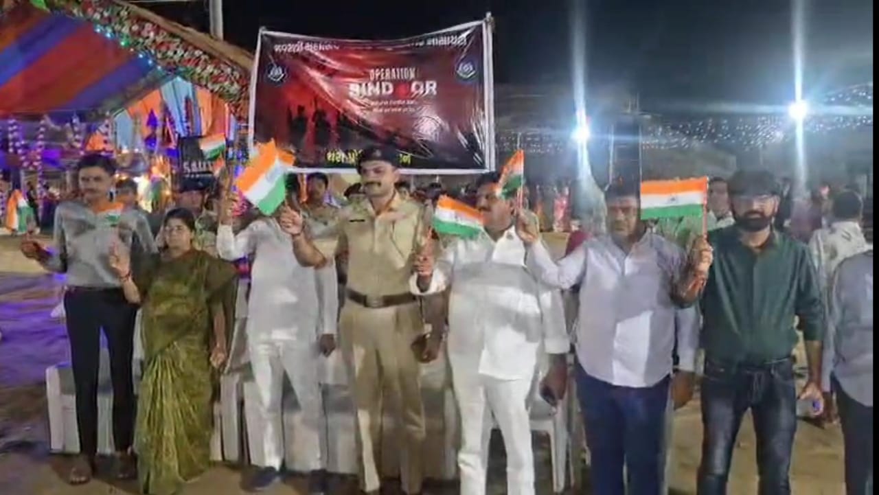 સમગ્રહ ગુજરાત માં સરકાર જાહેર કરેલ નવરાત્રી માં અગિયાર વાગે ઓપ્રેશન સિંદૂરની ગીત પર ગરબા રમી ને કાર્યક્રમ ની ઉજવણી કરવી તેને લઈ કાંકરેજ તાલુકાના થરા તાણા ગોકુળ નગર સોસાયટી માં આવેલ ગોકુળીયા ગોગા મહારાજ મંદિર માં થરા પોલીસ પી આઇ કે બી દેસાઈ ની ઉપસ્થિતિ માં કાર્યક્રમ યોજાયો હતો રાત્રે ના અગિયાર વાગે ગરબામાં ભાઈઓ બહેનો બાળકો હાથમા તિરંગા રાખી ઓપ્રેશન સિંદૂર ના ગીત પર સરકાર ના આદેશ નું પાલન કયુઁ હતું આ પ્રસંગે થરા પી આઇ કે બી દેસાઈ પોલીસ સ્ટાફ થરા નગરપાલિકા પ્રમુખ ચેતનાબેન અનીલકુમાર સોની. થરા નગરપાલિકા પૂર્વ પ્રમુખ પૃથ્વીરાજસિંહ વાઘેલા ગરબા આયોજક લલિતભાઈ કોટક કનક ભાઈ ખત્રી અંકુરભાઈ ઠક્કર નિરંજનભાઈ ઠક્કર વિજયભાઈ ટેસ્ટી રાજુભાઈ લાટી વગેરે સૌ ઓપ્રેશન સિંદૂર ના કાર્યક્રમ દીપાવ્યો હતો