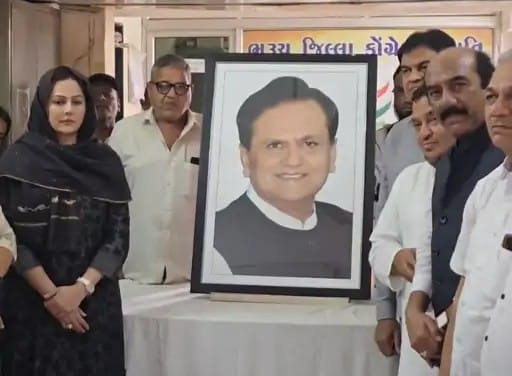 ​ભરૂચ જિલ્લા કોંગ્રેસ કાર્યાલય ખાતે વરિષ્ઠ કોંગ્રેસ નેતા અને ગુજરાતના ગૌરવ સ્વ. અહમદ પટેલની પુણ્યતિથિ નિમિત્તે પુષ્પાંજલિ કાર્યક્રમનું આયોજન કરવામાં આવ્યું હતું. આ કાર્યક્રમમાં કોંગ્રેસના મોટી સંખ્યામાં આગેવાનો અને કાર્યકરોએ સ્વ. પટેલને શ્રદ્ધાંજલિ અર્પણ કરી હતી.