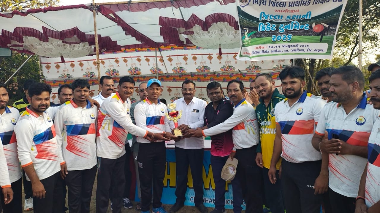 ટુર્નામેન્ટની રોમાંચક ફાઈનલમાં વાગરાની ટીમે નેત્રંગને પરાજય આપી વિજેતાનો ખિતાબ મેળવ્યો હતો. વાગરા ટીમના સોકતભાઈ ‘મેન ઓફ ધ મેચ’ અને ઝઘડિયા ટીમના વિપુલભાઈ ‘મેન ઓફ ધ સિરીઝ’ જાહેર થયા હતા. આ ટુર્નામેન્ટનું સફળ આયોજન વિપુલભાઈ પટેલ (ચેરમેન, ઝઘડિયા ટીચર ક્રેડિટ સોસાયટી) દ્વારા કરવામાં આવ્યું હતું, જેમાં જિલ્લા સંઘના પ્રમુખ પ્રદીપસિંહ રાણા, મહામંત્રી રાજીવ પટેલ સહિતના અગ્રણીઓએ આર્થિક અને નૈતિક સહયોગ પૂરો પાડ્યો હતો. વિજેતા ટીમોને ટ્રોફી એનાયત કરી પ્રોત્સાહિત કરવામાં આવી હતી. અંતે તમામ શિક્ષકોએ રાષ્ટ્રગીત ગાઈને શિસ્તબદ્ધ રીતે કાર્યક્રમનું સમાપન કર્યું હતું.