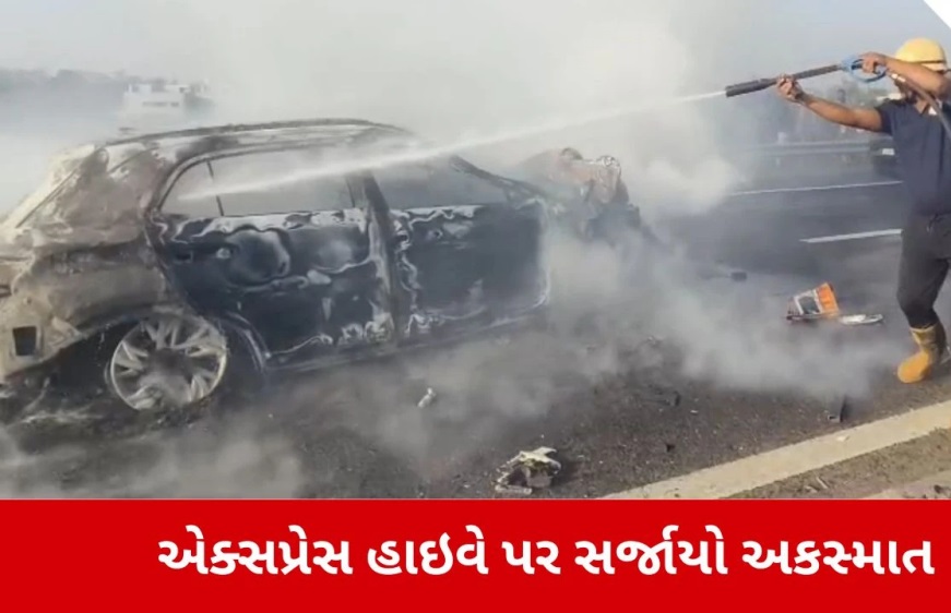 અકસ્માત બાદ કારમાં આગ લાગી