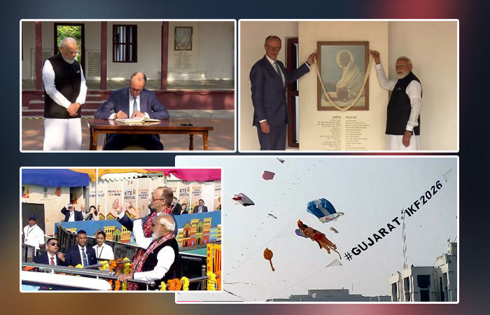 વડાપ્રધાન મોદી અને જર્મન ચાન્સેલર ફ્રેડરિક રિવરફ્રન્ટ પર પહોંચી ગયા છે. હવે અહીં ઈન્ટરનેશનલ કાઈટ ફેસ્ટિવનો પ્રારંભ કરાવવામાં આવ્યો છે. આ ઈન્ટરનેશનલ કાઈટ ફેસ્ટિવલમાં દેવિદેશથી 50 દેશના 135 પતંગબાજો ભાગ લેવાના છે. દેશના 13 રાજ્યો તથા ગુજરાતના 16 જિલ્લાના 871 પતંગરસીયાઓ પણ અહીં આવી પહોંચ્યા છે. હાલમાં પીએમ મોદી અને જર્મન ચાન્સેલર પણ અહીં હાજર છે.