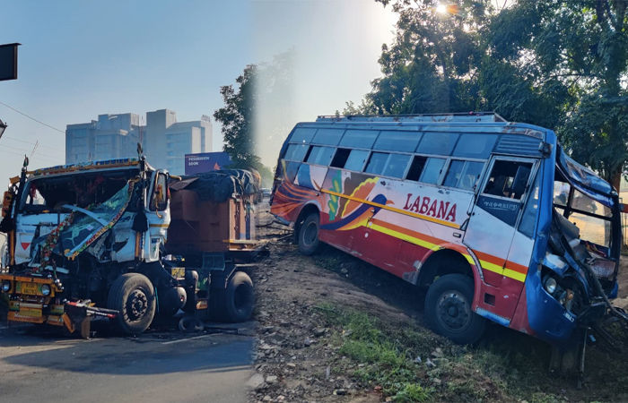 આ દરમિયાન બસની બિલકુલ પાછળ આવી રહેલું ટ્રેલર સમયસર રોકાઈ શક્યું ન હતું અને ધડાકાભેર બસના પાછળના ભાગે અથડાયું હતું. આ ટક્કર એટલી જોરદાર હતી કે બસ ફંગોળાઈને રોડની બાજુમાં ખાડામાં ઉતરી ગઇ હતી અને એક હોર્ડિંગ સાથે અથડાઈ હતી. આ અકસ્માતમાં ટ્રેલરના ડ્રાઇવરને ઇજાઓ પહોંચતા તેને તાત્કાલિક સારવાર માટે નજીકની હોસ્પિટલમાં ખસેડવામાં આવ્યો હતો.