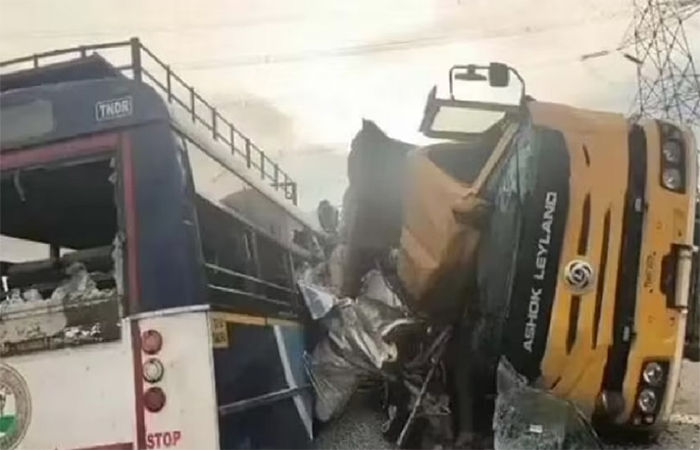અહેવાલ : ( રવિકુમાર કાયસ્થ ) તેલંગણાનાં રંગારેડ્ડી જિલ્લામાં સોમવાર સવારે એક ભીષણ માર્ગ અકસ્માત થયો હતો. એક બસ ડમ્પર સાથે અથડાતાં ૨૪ લોકોનાં મોત થયા છે અને અન્ય કેટલાક લોકો ઘાયલ થયા છે. પોલીસના જણાવ્યા અનુસાર કપચી લઇને જતાં એક ડમ્પર અને રાજ્ય સરકારની બસ સામસામે અથડાયા હતાં. સૂત્રોનાં જણાવ્યા અનુસાર મૃતકોની સંખ્યા વધવાની શક્યતા છે. બસમાં મોટાભાગે બાળકો અને ઓફિસ જઇ રહેલા લોકો સવાર હતાં.