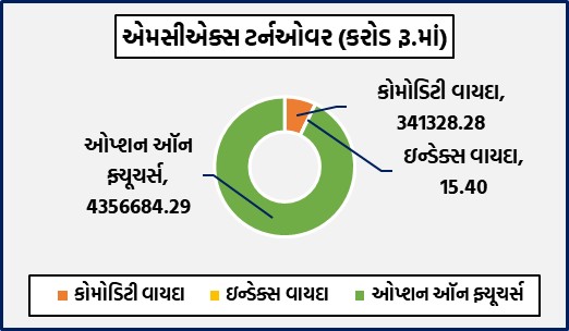 કામકાજની દૃષ્ટિએ એમસીએક્સ પર સમીક્ષા હેઠળના સપ્તાહ દરમિયાન સોનાના વિવિધ વાયદાઓમાં રૂ.166775.10 કરોડ અને ચાંદીના વિવિધ વાયદાઓમાં રૂ.120515.39 કરોડનાં કામકાજ થયાં હતાં. તાંબાંના વાયદાઓમાં રૂ.11718.53 કરોડ, એલ્યુમિનિયમ અને એલ્યુમિનિયમ-મિનીના વાયદાઓમાં રૂ.2065.67 કરોડ, સીસું અને સીસું-મિનીના વાયદાઓમાં રૂ.235.88 કરોડ, જસત અને જસત-મિનીના વાયદાઓમાં રૂ.3677.08 કરોડનાં કામકાજ થયાં હતાં.