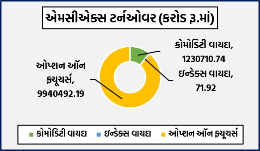 મુંબઈઃ દેશના અગ્રણી કોમોડિટી ડેરિવેટિવ્ઝ એક્સચેન્જ એમસીએક્સ પર 1થી 30 સપ્ટેમ્બર મહિના દરિયાન વિવિધ કોમોડિટી વાયદા, ઓપ્શન્સ અને ઇન્ડેક્સ ફ્યુચર્સમાં રૂ.11171274.84 કરોડનું ટર્નઓવર નોંધાયું હતું. કોમોડિટી વાયદાઓમાં રૂ.1230710.74 કરોડનાં કામકાજ થયાં હતાં. કોમોડિટી ઓપ્શન્સમાં રૂ.9940492.19 કરોડનું નોશનલ ટર્નઓવર નોંધાયું હતું. બુલિયન ઇન્ડેક્સ બુલડેક્સ ઓક્ટોબર વાયદો 27396 પોઇન્ટના સ્તરે બંધ થયો હતો. કોમોડિટી ઓપ્શન્સમાં કુલ પ્રીમિયમ ટર્નઓવર રૂ.103643.79 કરોડનું થયું હતું.