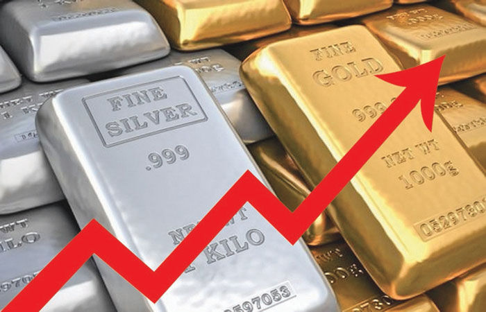 વિશ્વ બજાર પાછળ ઘરઆંગણે આજે અમદાવાદ ઝવેરી બજારમાં સોનાના ભાવ ૧૦ ગ્રામના વધુ રૂ.૪૫૦૦ ઉછળ્યા હતા. જ્યારે અમદાવાદ ચાંદીના ભાવ કિલોના વધુ રૂ.૧૫ હજાર ઉછળ્યા હતા. બે દિવસમાં સોનાના ભાવ રૂ.૯૫૦૦ તથા ચાંદીના ભાવ રૂ.૩૦ હજાર વધી ગયા હતા.  અમદાવાદ બજારમાં સોનાના ભાવ ઉછળી ૧૦ ગ્રામના ૯૯૫ના રૂ.૧૪૯૭૦૦ તથા ૯૯૯ના રૂ.૧૫૦૦૦૦ રહ્યા હતા.