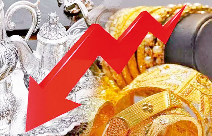 જ્યારે  ચાંદીના ભાવ કિલોના વધુ રૂા.૭૦૦૦ ગબડયા હતા. દરમ્યાન, વિશ્વ બજારમાં સોનાના ભાવ ઔંસના ૪૬૬૭ થી તૂટી નીચામાં ભાવ છેલ્લે ૪૪૯૨ ડોલર રહ્યા હતા. સોના પાછળ વૈશ્વિક ચાંદીના ભાવ પણ ઔંશના ૭૧.૭૪થી ગબડી ૬૭.૬૯ ડોલર થઇ છેલ્લે ૬૭.૯૫ ડોલર રહ્યા હતા.  વિશ્વ બજારમાં ડોલરનો ગ્લોબલ ઇન્ડેક્ષ વધી ૯૯.૭૯ થઇ છેલ્લે ૯૯.૫૦ આસપાસ રહ્યાના વાવડ હતા.દરમ્યાન આજે બંધ બજારે રૂાપિયા સામે ડોલરના ભાવ રૂા.૯૩.૭૧ થી વધી રૂા.૯૩.૭૮ ની નવી ટોચે બોલાતા રૂપિયો નવા નીચા તળીયે ઉતરી ગયો હતો. અમદાવાદ ઝવેરી બજારમાં આજે સોનાના ભાવ તૂટી ૯૯૫ના રૂા.૧૪૮૨૦૦ તથા ૯૯૯ના રૂા.૧૪૮૫૦૦ રહ્યા હતા. જ્યારે અમદાવાદ ચાંદીના ભાવ ગબડી રૂા.૨૨૮૦૦૦ બોલાયા હતા. દર્મયાન, વિશ્વ બજારમાં પ્લેટીનમના ભાવ ઘટી ૧૯૨૯ ડોલર રહ્યા હતા. પેલેડીયમના ભાવ  ઘટી ૧૪૧૫ ડોલર રહ્યા હતા. વૈશ્વિક કોપના ભાવ છેલ્લે ૧.૭૩ ટકા માઇનસમાં રહ્યા હતા.  વિશ્વ બજારમાં ક્રુડ તેલના ભાવમાં જોકે તેજી આગળ વધી હતી. બ્રેન્ડ ક્રૂડના ભાવ બેરલના ૧૦૮.૧૭ વાળા ઉંચામાં ૧૧૩.૧૧ થઇ છેલ્લે ૧૧૨.૧૯ ડોલર રહ્યા હતા.