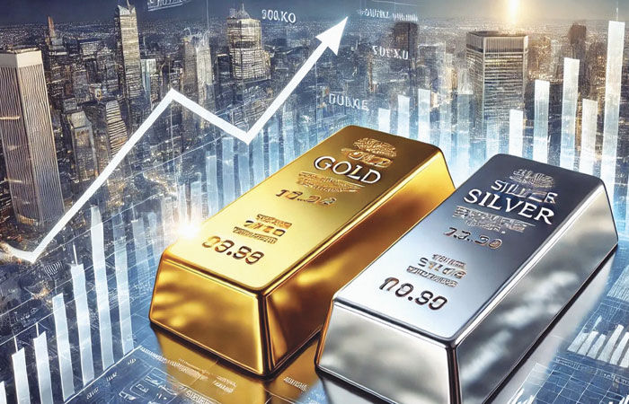 વિશ્વ બજાર પાછળ ઘરઆંગણે અમદાવાદ ઝવેરી બજારમાં આજે સોનાના ભાવ ૧૦ ગ્રામના વધુ રૂ.૧૦૦૦ ઉછળી ૯૯૫ના ભાવ રૂ.૧૩૨૭૦૦ તથા ૯૯૯ના ભાવ રૂ.૧૩૩૦૦૦ બોલાયા હતા. સોનાના ભાવ ૩ દિવસમાં રૂ.૩૫૦૦ ઉછળ્યા છે જ્યારે અમદાવાદ ચાંદીના ભાવ આજે કિલોના વધુ રૂ.૪૦૦૦ ઉછળતાં છેલ્લાં છ દિવસની સળંગ રેકોર્ડ તેજીમાં ચાંદીના ભાવ રૂ.૧૯ હજાર વધી જતાં બજારના ખેલાડીઓ સ્તબ્ધ બની ગયા હતા. અમદાવાદ ચાંદી આજે રૂ.૧.૭૫૦૦૦ની ટોચે પહોંચી હતી. વિશ્વ બજારમાં આજે સોનાના ભાવ ઔંશના ૪૨૩૯થી ૪૨૪૦ વાળા વધી ઉંચામાં ભાવ ૪૨૬૨ થઈ ૪૨૫૪થી ૪૨૫૫ ડોલર રહ્યા હતા. વિશ્વ બજારમાં ડોલરનો ઈન્ડેક્સ ઘટતાં વૈશ્વિક સોનામાં ફંડોનું બાઈંગ જળવાઈ રહ્યાના વાવડ મળ્યા હતા. વિશ્વ બજારમાં આજે સોના પાછળ ચાંદીના ભાવ ઔંશના ૫૬.૫૦થી ૫૬.૫૧ વાળા વધુ વધી ઉંચામાં ભાવ ૫૭ ડોલરની સપાટી પાર કરી ઉંચામાં ભાવ ૫૭.૮૬ થઈ ૫૭.૫૭થી ૫૭.૫૮ ડોલ ર બોલાઈ રહ્યા હતા. ચાંદીના ભાવ આ વર્ષે ૧૦૦ ટકા વધ્યા છે.