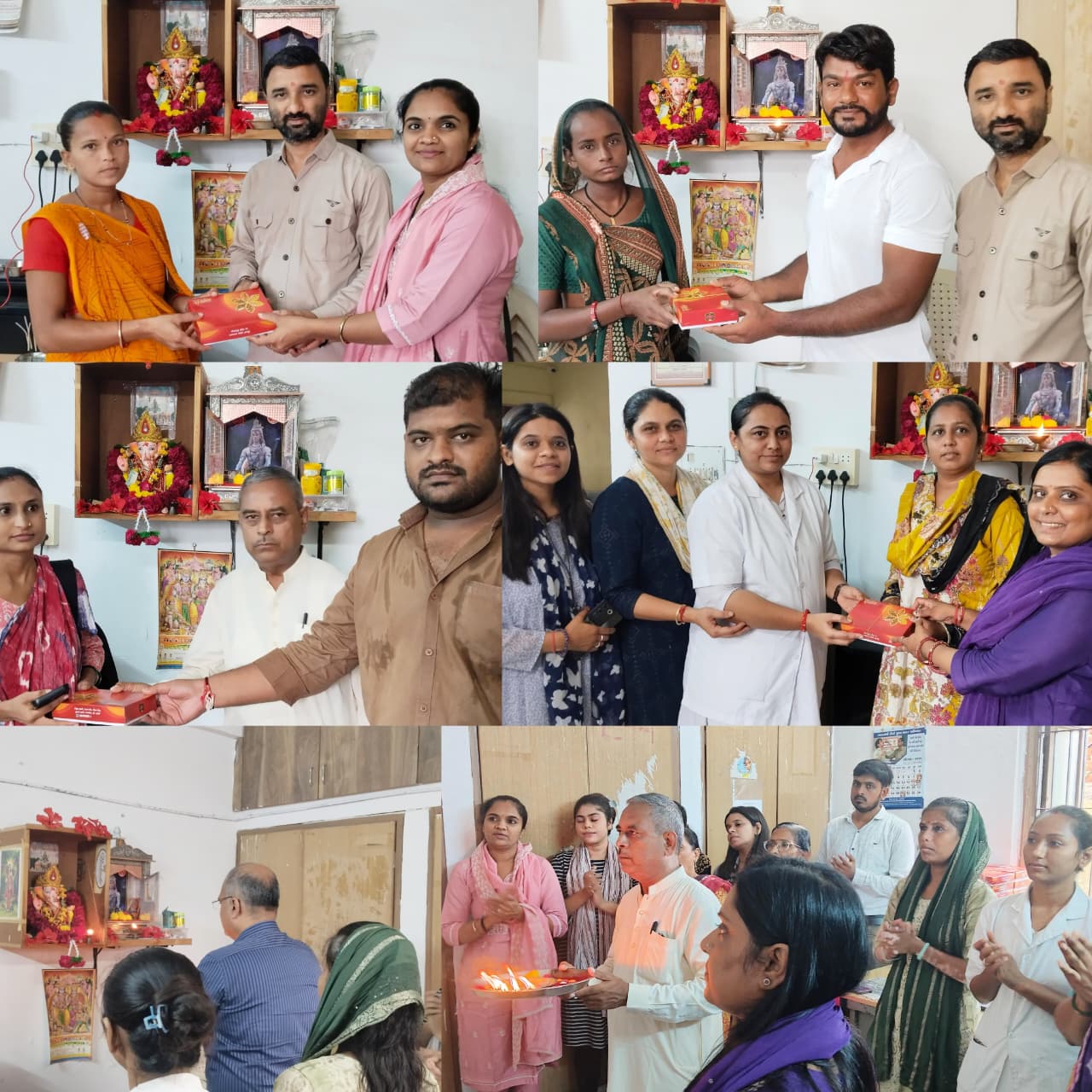 તાલુકા હેલ્થ ઓફિસ વિરમગામ ખાતે ગણેશોત્સવ દરમ્યાન ગણપતિ દાદાને સુખડીનો પ્રસાદ ધરાવવામાં આવ્યો હતો. સી.એમ.એમ ભારત દ્વારા વિરમગામના ૧૦૦થી વધુ સગર્ભા બહેનોને ગણપતિ દાદાના પ્રસાદ રૂપે સુખડી આપવામાં આવી હતી. વિચરતી અને વિમુક્ત જાતિના બાંધવો તથા ઉપસ્થિત મહાનુભાવોના વરદ હસ્તે તાલુકા હેલ્થ ઓફિસ ખાતે ૧૫ સગર્ભા બહેનોને સુખડી આપવામાં આવી હતી અને બાકીના ૮૫ થી વધુ સગર્ભા બહેનોને આશા બહેનો, આરોગ્ય કર્મચારીઓ દ્વારા ઘરે સુખડી પહોંચાડવામાં આવી હતી. ઉપસ્થિત તમામ લોકો દ્વારા વિઘ્નહર્તા ભગવાન ગણેશજીની આરતી ઉતારવામાં આવી હતી.