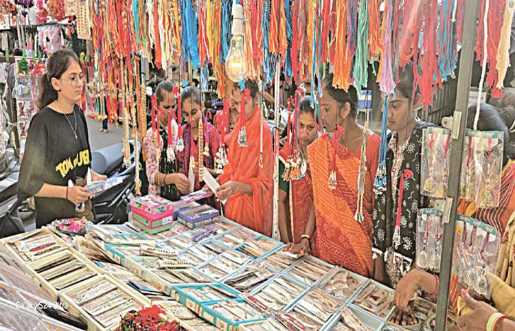 ભાઈ-બહેનના પવિત્ર તહેવાર એવા રક્ષાબંધનના ૫ર્વને ગણતરીના દિવસો બાકી છે ત્યારે ઝાલાવાડની બજારોમાં રાખડીની ખરીદીમાં ભીડ જોવા મળી રહી છે. ગત વર્ષ કરતા રાખડીના ભાવમાં ૨૦થી ૨૫ ટકા જેટલો વધારો જોવા મળ્યો હતો. આ વર્ષો બાળકોમાં બાળકોમાં કાર્ટૂન કેરેક્ટર વાળી અને મોટેરાઓમાં રૃદ્રાક્ષ અને રામ મંદિરની રાખડી ડિમાન્ડમાં છે.