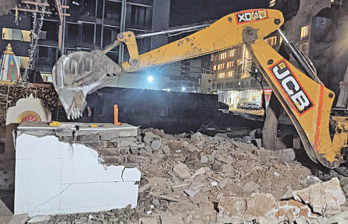 GANDHINAGAR : રીઝર્વ પ્લોટમાં ઉભા થયેલા ધાર્મિક દબાણને કોર્પોરેશન તંત્રએ તોડી પાડયું