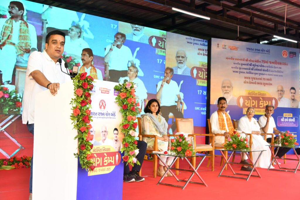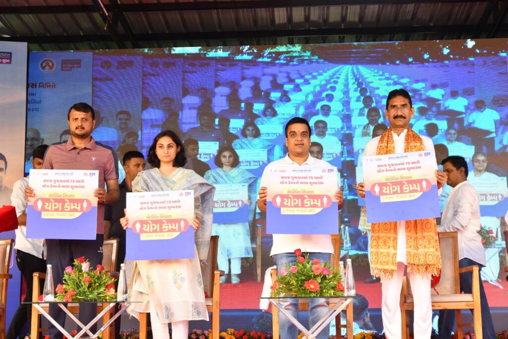 મુખ્યમંત્રી શ્રી ભૂપેન્દ્ર પટેલના માર્ગદર્શનમાં “સ્વસ્થ ગુજરાત, મેદસ્વિતા મુક્ત ગુજરાત”ના સંકલ્પને સાકાર કરવા અને વડાપ્રધાન શ્રી નરેન્દ્રભાઈ મોદીના ૭૫માં જન્મ દિવસ નિમિત્તે રાજ્યભરમાં વિવિધ ૭૫ સ્થળોએ મેદસ્વિતા નિવારણ ‘યોગ કેમ્પ’નો આજે ગાંધીનગર ખાતેથી ગૃહ રાજ્ય મંત્રી હર્ષ સંઘવીએ ભવ્ય શુભારંભ કરાવ્યો હતો.
