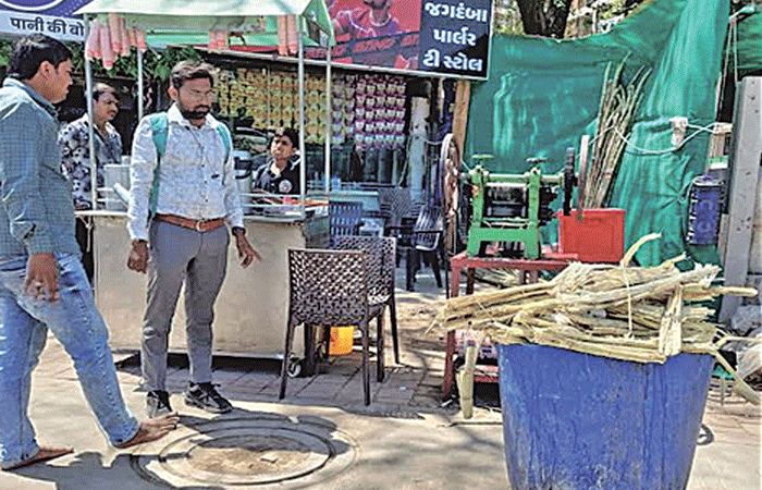 ઉનાળાની આકરી ગરમીની શરૃઆત થતાં જ પાટનગરમાં શેરડીના રસના વેચાણમાં મોટો ઉછાળો જોવા મળી રહ્યો છે. જોકે, આ વ્યવસાય સાથે સંકળાયેલા કેટલાક વેપારીઓ દ્વારા રસ્તાઓ અને જાહેર સ્થળો પર ગંદકી ફેલાવવામાં આવતી હોવાની ફરિયાદો ઉઠી હતી. આ પરિસ્થિતિને ગંભીરતાથી લઈને ગાંધીનગર મહાનગરપાલિકાની સેનિટેશન શાખા દ્વારા શહેરના વિવિધ વિસ્તારોમાં એક વિશેષ તપાસ ઝુંબેશ હાથ ધરવામાં આવી હતી.