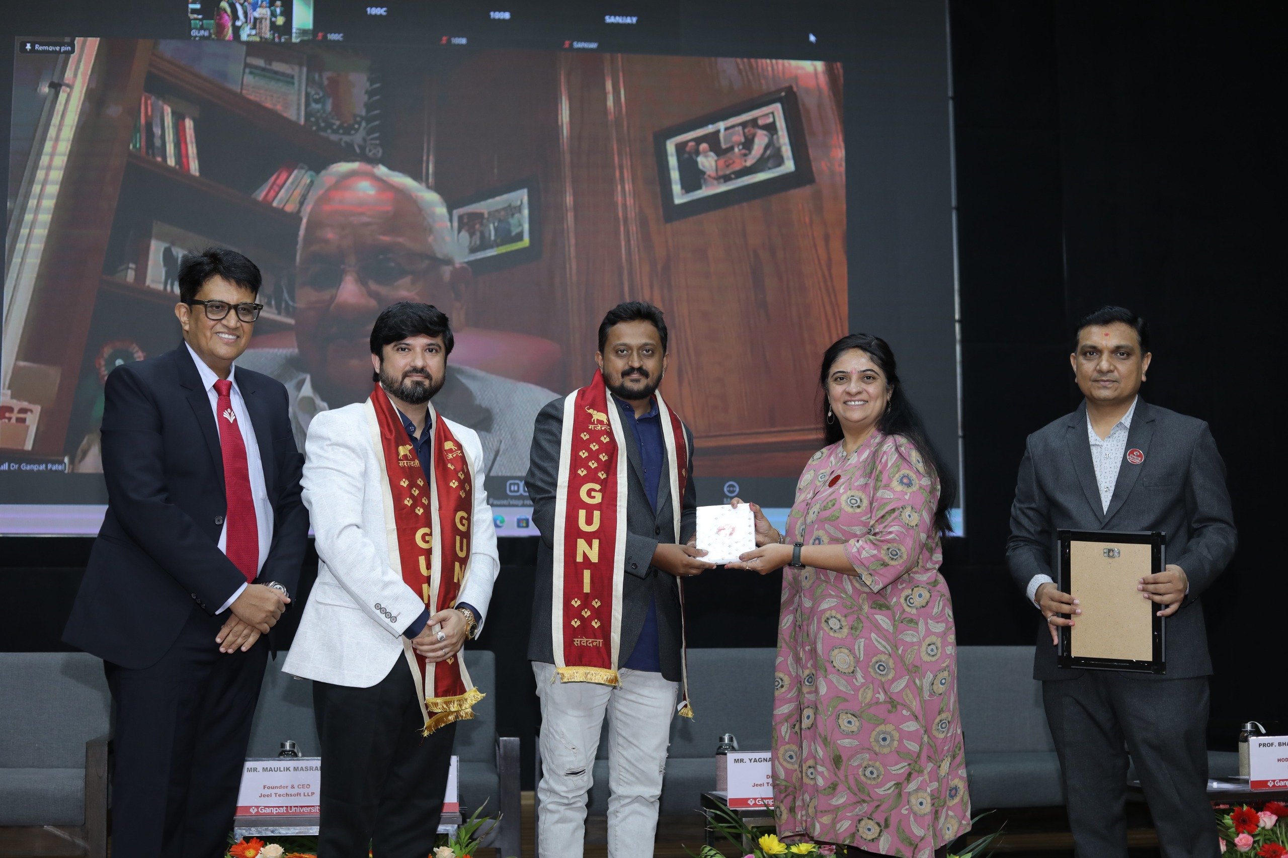 હજારો વિદ્યાર્થીઓ અને વાલીઓની ઉપસ્થિતિમાં ભારે ઉમંગ અને દબદબાભેર ઉજાવાયેલા આ ” જ્યોતિર્મય – 2025 ” ઉત્સવમાં ગણપત યુનિવર્સિટીના પ્રેસિડેન્ટ પદ્મશ્રી ગણપતભાઈ પટેલ – દાદા અને પોલિટેકનિક કોલેજના પ્રધાન-દાતા માનનીય શ્રી બેચરભાઈ પટેલે અમેરિકાથી ઓનલાઇન હાજરી આપી હતી, તો ગણપત યુનિવર્સિટીના ગ્રુપપ્રો ચાન્સેલર ડોક્ટર શ્રી મહેન્દ્ર શર્મા, જીલ ટેક-સોફ્ટ સ્થાપક અને સીઈઓ શ્રી મૌલિક મશરાની, જીલ ટેક્-સોફ્ટના ડાયરેક્ટ શ્રી પંડ્યા, સુઝુકી મોટર ગુજરાત પ્રાઇવેટ લિમિટેડના એચ. આર. મેનેજર શ્રી યોગેશ જોશી, રાધે બિલ્ડીંગના પ્રોપરાઇટર શ્રી કાર્તિક પટેલ સહિત અનેક મહાનુભાવોએ આ સમારોહમાં પ્રત્યક્ષ ઉપસ્થિત રહી વિદ્યાર્થીઓને કારકિર્દી અને જીવનમાં સફળતા માટે માર્ગદર્શન અને આશીર્વાદ આપી ઉપકૃત કર્યા હતા. ડિપ્લોમા કોલેજના પ્રિન્સિપાલ પ્રો..ડો..શ્રી કે.પી. પટેલ સાહેબે પોતાના આવકાર પ્રવચનમાં સૌ વિદ્યાર્થીઓ અને વાલી મિત્રોને સંબોધતા જણાવ્યું હતું કે ઉજ્જવળ કારકિર્દી બનાવવા માટે ધીરજ, લગન, સ્વયંશિસ્ત અને સખત મહેનતનો કોઈ વિકલ્પ નથી.