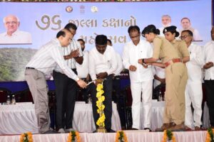 આ પ્રસંગે લખપતિ દીદી યોજના અંતર્ગત સખી મંડળની બહેનોને નર્સરી માટે રૂપિયા એક લાખની સહાયના ચેક અર્પણ કરવામાં આવ્યા હતા. વન વિભાગમાં વર્ષ દરમિયાન ઉત્કૃષ્ટ કામગીરી કરનારા કર્મયોગીઓને પણ સન્માનિત કરવામાં આવ્યા હતા. કાર્યક્રમના અંતે નાગરિકોને વૃક્ષા રોપણ માટે વૃક્ષરથ દ્વારા રોપા વિતરણ કરી ગામમાં વૃક્ષ રથને લીલી ઝંડી આપી રવાના કરવામાં આવ્યો હતો.