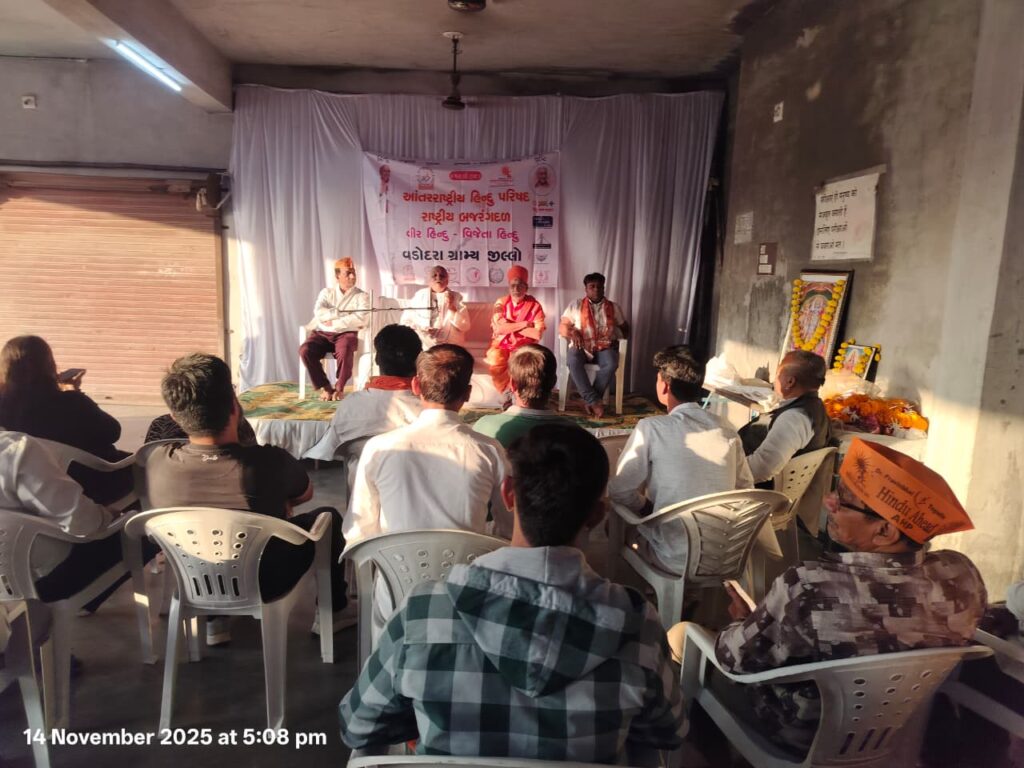 આંતરરાષ્ટ્રીય હિન્દૂ પરિષદ તથા ,રાષ્ટ્રીય બજરંગ દળ દ્વારા વડોદરા ગ્રામ્ય તથા જિલ્લા માં વધુ માં વધુ હનુમાન ચાલીશા કેન્દ્ર શરૂ કરવા બેઠક નું આયોજન કરવામાં આવ્યું હતું.આ પ્રસંગે અંતરરાષ્ટ્રીય હિન્દુ પરિષદ ના પ્રવીણ તોગડીયા ખાસ ઉપસ્થિત રહ્યા હતા.અને હિન્દૂ પરિષદ તથા બજરંગ દળ ના કાર્યકરો સાથે બેઠક કરી હતી અને વડોદરા શહેર તથા જિલ્લા ના ગામે ગામ દર શનિવારે હનુમાન ચાલીસા ના પાઠ કરવા આહવાન કર્યું હતું.