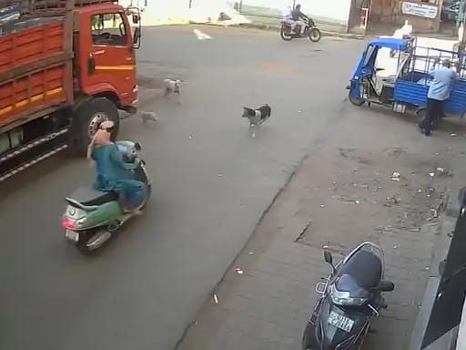 મળતી માહિતી મુજબ, એક યુવતી સુરતી ભાગોળથી ગોયા બજાર તરફ પોતાની મોપેડ (એક્ટિવા) પર સવાર થઈને જઈ રહી હતી. આ દરમિયાન રસ્તામાં કેટલાક રખડતા શ્વાનોએ અચાનક તેની પાછળ દોટ મૂકી હતી. શ્વાનો પાછળ પડતા યુવતી ગભરાઈ ગઈ હતી અને તેણે બચવા માટે મોપેડનું એક્સીલેટર વધુ ઝડપથી વધારી દીધું હતું.