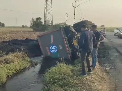 ​અંકલેશ્વર-દાંડી હેરિટેજ માર્ગ પર નવા પુન ગામની સીમમાં કોલસાના પાઉડરથી ભરેલી એક હાઇવા ટ્રક અચાનક પલટી જતાં અકસ્માત સર્જાયો હતો. આ ઘટનામાં ટ્રક ચાલકનો ચમત્કારિક બચાવ થયો હતો, પરંતુ ઢોળાયેલા કોલસાના કારણે સ્થાનિક ખેડૂતોને મુશ્કેલીનો સામનો કરવો પડ્યો હતો.અકસ્માત એટલો જોરદાર હતો કે ટ્રકમાં ભરેલો તમામ કોલસાનો પાઉડર રોડની સાઈડમાં આવેલા વરસાદી કાંસમાં ઠલવાઈ ગયો હતો. કાંસમાં કોલસો ભરાઈ જવાને કારણે પાણીનો નિકાલ અવરોધાયો હતો અને વરસાદી પાણી સીધું નજીકના ખેતરોમાં ફરી વળ્યું હતું. ઉભા પાકને નુકસાન થવાની ભીતિ જણાતા ખેડૂતોમાં ચિંતા પ્રસરી હતી.