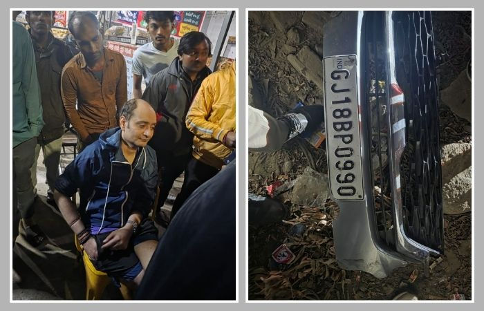 પ્રાપ્ત માહિતી મુજબ, નિતિન શાહ નામના કારચાલકે નિયંત્રણ ગુમાવતા ટુ-વ્હીલર અને ફોર-વ્હીલરને ટક્કર મારી હતી. સદનસીબે કોઈ જાનહાનિ નોંધાઈ નથી, પરંતુ અનેક વાહનોને ભારે નુકસાન થયું છે. સ્થાનિક લોકોએ કારચાલકને પકડી પોલીસને સોંપ્યો હતો. બોપલ પોલીસે તેની અટકાયત કરી મેડિકલ તપાસ હાથ ધરી છે.