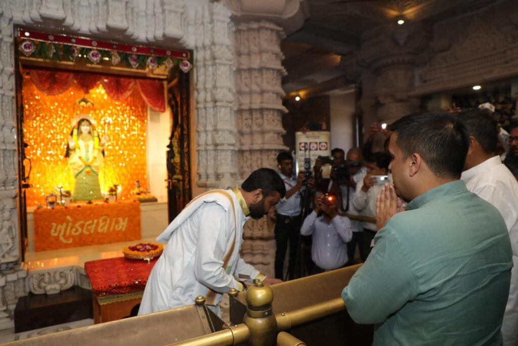 ગુજરાતના નાયબ મુખ્યમંત્રી હર્ષ સંઘવી કાગવડ સ્થિત ખોડલધામ મંદિર ખાતે માં ખોડલના દર્શને પહોંચ્યા હતા,નાયબ મુખ્યમંત્રી તરીકેનો પદભાર સંભાળ્યા બાદ આ તેમની ખોડલધામની પ્રથમ મુલાકાત હતી,મંદિર પરિસરમાં તેમનું ‘ગાર્ડ ઓફ ઓનર’ આપી ભવ્ય સ્વાગત કરવામાં આવ્યું હતું,