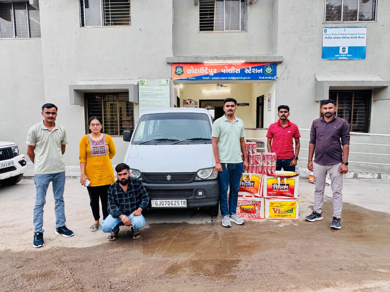 જે અનુસંધાને કે.એચ.સુર્યવંશી નાયબ પોલીસ અધિક્ષક છોટાઉદેપુર વિભાગ છોટાઉદેપુર નાઓના માર્ગદર્શન હેઠળ આજરોજ છોટાઉદેપુર પોલીસ સ્ટેશનના ઇન્ચાર્જ પોલીસ ઇન્સ્પેકટર એચ.એમ.કાપડીયા નાઓની સુચના મુજબ છોટાઉદેપુર પોલીસ સ્ટેશનમાં સર્વલન્સ સ્કોડમાં ફરજ બજાવતા અ.હે.કો. ઉનડભાઈ રામભાઈ બ.નં. ૧૬૦ નાઓએ ચોક્કસ બાતમી હકીકત મેળવી રૂનવાડ ગામ પાસેથી ઈકો ગાડી જેનો રજી.નંબર. GJ-07-DG-4 2518 માં વીમલના થેલાઓમાં ભારતીય બનાવટનો વિદેશી દારૂ કુલ બોટલ નંગ.૨૪૦ ની કિ.રૂ.૩૮,૪૦૦/- વિદેશી દારૂ તથા તથા પ્રોહી મુદ્દામાલની હેરાફેરીમાં વપરાયેલ ઇકો ગાડી જેની કિં.રૂ.૫,૦૦,૦૦૦/- તથા મોબાઈલ નંગ ૦૧ ની કિ.રૂ.૫,૦૦૦/- મળી કુલ કિં.રૂ.૫,૪૩,૪૦૦/- ના મુદામાલ સાથે રાહુલકુમાર શંકરભાઈ પરમાર નાઓને પકડી પાડી છોટાઉદેપુર પોલીસ સ્ટેશન સી પાર્ટ ગુ.ર.નં.૧૧૧૮૪૦૦૨૨૫૧૧૬૪/૨૦૨૫ પ્રોહીબીશન એકટની કલમ ૬૫ એઇ,૯૮(૨) મુજબનો ગુનો દાખલ કરી -કાયદેસરની કાર્યવાહી હાથ ધરવામા આવેલ છે.