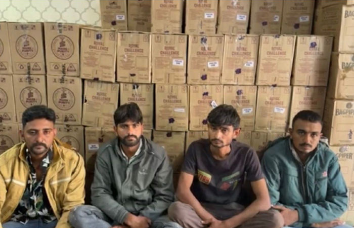 એલસીબીએ ચોક્કસ બાતમીના આધારે દરોડો પાડી સ્થળ પરથી જુદી-જુદી બ્રાન્ડની અંગ્રેજી દારૂની ૩૭૨૦ બોટલ કબજે કરી હતી. સ્થળ પરથી જૂનાગઢના પંચેશ્વરમાં રહેતા સામત ભીમાભાઈ કરમટા, હીરાભાઈ જીવાભાઈ મોરી, રાજુ ડાયાભાઈ સિંઘલ અને ધોરાજીના વેગડી ગામે રહેતા કારૂ ધીરુભાઈ ગોહેલને ઝડપી લીધા હતાં.