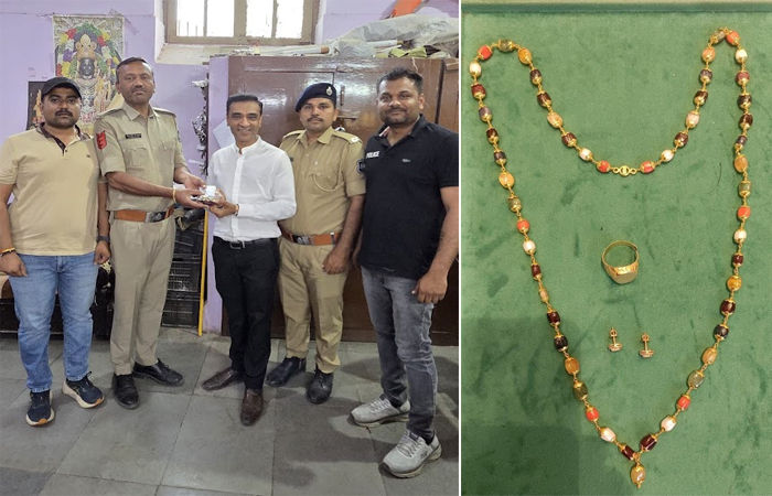 જામનાગરના સીટી એ. ડીવીઝન પોલીસ સ્ટેશન વિસ્તારના માંડવી ટાવર પાસે બાલકૃષ્ણ જવેલર્સ નામે દુકાન ચલાવતા પ્રશાંત ભુપેન્દ્રભાઇ માંડલીયા ગઈ કાલે સવારે 11:45 વાગ્યાની આસપાસ એક રીક્ષામાં પોતાની બાલકૃષ્ણ જવેલર્સ નામની દુકાન ખાતે સોનાના દાગીના વાળું પાકીટ (બેગ) લઇને આવતા હતા. તે દરમ્યાન મોબાઇલમાં વાતચીત કરી રીક્ષા ચાલકને ભાડું દઇને પોતાની દુકાનમાં ચાલ્યા ગયા હતા અને પોતાનું સોનાના દાગીનાવાળું બેગ રીક્ષામાં ભુલી ગયા હોય જે બેગમાં એક સોનાની વીંટી તથા એક માળા તથા એક જોડી બુટી જે દાગીનાઓનો વજન આશરે 70 ગ્રામ જેની આશરે કિ.રૂ.6,50,000 જેટલી થાય છે.જેથી તેમણે સિટી એ. ડિવિઝન પોલિસ સ્ટેશનનો સંર્પક કર્યો હતો, અને ઉપરોકત હકિકત જણાવતા તુરંત જ સર્વેલન્સ સ્ટાફના તથા કમાન્ડ એન્ડ કન્ટ્રોલ સેન્ટર (નેત્રમ) જામનગરની પોલીસ ટીમ દ્વારા માડવી ટાવર, ચાંદીબજાર, અંબર ચોક, ડી.કે.વી સર્કલ, બેડેસ્વર ચોકડી તથા ધુવાવ ગામ વિસ્તારના અલગ-અલગ સી.સી.ટી.વી. કેમેરા ચેક કરતા તથા હ્યુમન રીસોર્સ તેમજ ટેકનીકલ એનાલીસીસથી જી.જે. 03 સી.ટી.0838 રીક્ષાને શોધી કાઢી હતી, અને તે રીક્ષા ચાલક પાસેથી બેગ(પાકીટ) મેળવીને અરજદારનું બેગ(પાકીટ) તથા તેમા રહેલ સોનાની માળા તથા વીંટી અને એક જોડી કાનની બુટી આશરે 70 ગ્રામ કિ.રૂ.6,50,000 ના દાગીના શોધી પરત અપાવ્યા છે, જેથી સોની વેપારીએ સિટી એ. ડિવિઝન પોલીસનો આભાર માન્યો હતો.