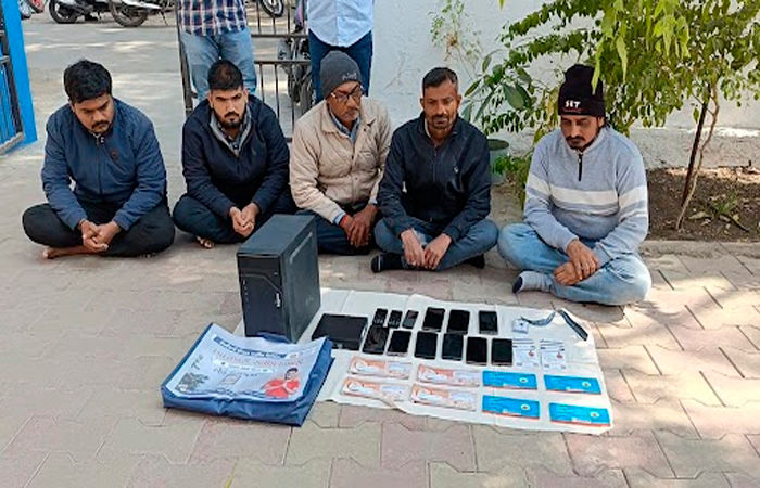 આ બાબતે સાયબર ક્રાઇમ પોલીસ સ્ટેશનમાં ભારતીય ન્યાય સંહિતા – 2023 ની કલમ 316(5), 318(4), 61(2) તથા ઇન્ફોર્મેશન ટેક્નોલોજી એક્ટ-2000 ની કલમ 66(સી), 66(ડી) મુજબ ગુન્હો નોંધવામાં આવ્યો હતો, અને તે ગુન્હામાં (1) હિરેનભાઈ નાથાલાલ લાઠીયા ઉ.વ.37 (રહે. તીરૂપતી પાર્ક 7/બી ઢિંચડા રોડ મુળ રહે.કૃષ્ણકુંજ શેરી નં.4 હિમાલય સોસયટી જામનગર), (2) ચેતનભાઈ અશોકભાઈ પાણખાણીયા ઉ.વ.36 (રહે.નિલકમલ સોસાયટી શેરી નં.5 ખોડીયાર કોલોની જામનગર), (3) રાહુલભાઈ રાજેન્દ્રપ્રશાદ ભટ્ટ ઉ.વ.52 (રહે.1/2 મકવાણા સોસાયટી, શાંતિનગર પાછળ હરીયા સ્કૂલની સામે જામનગર) (4) અભયભાઈ જીતેન્દ્રભાઈ પરમાર ઉ.વ.28 (રહે. ખોડીયાર કોલોની ન્યુ આરામ કોલોની કોળીનો દંગો જામનગર) અને (5) રામજી કમોદસિંઘ લોધી ઉ.વ.25 નોકરી (રહે-જકાતનાકા પાસે પાર્થ એપાર્ટમેન્ટ ત્રીજો માળ જામનગર)ની અટકાયત કરી લીધી હતી, જેઓને અદાલત સમક્ષ રજૂ કરી ત્રણ દિવસના રિમાન્ડ પર લેવાયા હતા.