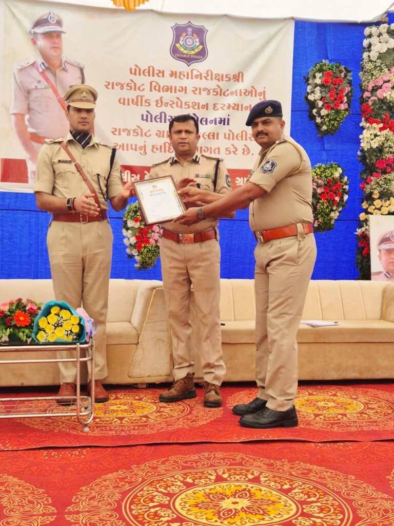 જેતપુર તાલુકા પો.સ્ટે.માં ભારતીય ન્યાય સંહિતા-૨૦૨૩ ની કલમ ૩૦૫(એ), ૩૩૧(૪), ૫૪ મુજબનો ગુન્હો દાખલ થયેલ જેમાં નાફેડ દ્વારા સ્ટોરેજ માટે રાખવામાં આવેલ મગફળીના જથ્થામાંથી કુલ-૧૨૧૨ ગુણી જેની કુલ કિંમત રૂ.૩૧,૬૪,૯૫૬ ની ચોરી થયેલ જે અંગે ગણતરીના કલાકોમા ટેકનીકલ સોર્સીસની મદદથી તમામ આરોપીને શોધી કાઢી રોકડા રૂ.૧૫,૩૫,૦૦૦ તથા અન્ય કુલ કિંમત રૂ.૧૭,૨૫,૦૦૦ નો મુદામાલ રિકવર કરી ગુનાનુ સમય મર્યાદામાં ડિટેક્શન કરવા બદલ આ પ્રશંસાપત્ર આપવામાં આવે છે.