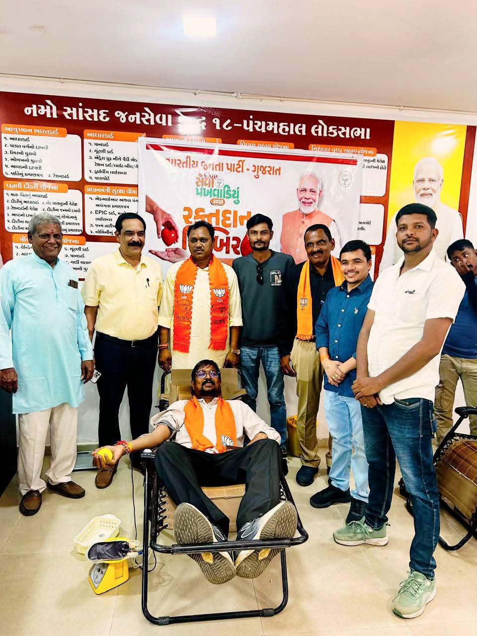 જેમાં આપણા મહીસાગર જીલ્લાના આદરણીય જીલ્લા પ્રમુખ દશરથભાઈ બારીયા સાથે પૂર્વ પ્રમુખ જે.પી.પટેલ સાથે સેવા પખવાડિયાના પ્રસંગે ભારતીય જનતા પાર્ટીના કાર્યકરો દ્વારા તાલુકા કક્ષાએથી માંડીને જીલ્લા કક્ષાએ વિવિધ જગ્યાએ કાર્યક્રમો ચાલે છે. ત્યારે મોદીજીના જન્મ દિવસની ઉજવણી વિવિધ જગ્યાએ ઉત્સાહભેર મહીસાગર જીલ્લામાં ઊજવણીની વિવિધ કાર્યક્રમો યોજવામાં આવેલ છે.ભારતીય જનતા પાર્ટીના કાર્યકરો હોદેદારો આ રક્તદાન લુણાવાડા નગરના કાર્યકરો હોદેદારો કેમ્પમાં ઉપસ્થિત રહી કાર્યક્રમને સફળ બનાવવામાં સહભાગી બન્યા હતા.