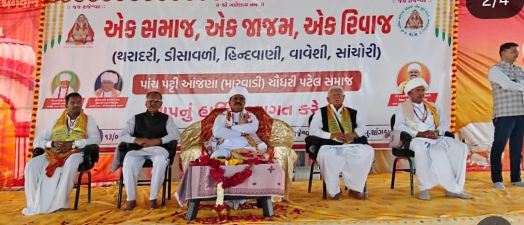 વાવ-થરાદ પંથકના મારવાડી ચૌધરી સમાજ દ્વારા સામાજિક એકતા અને સંસ્કારને મજબૂત બનાવવા મહત્વપૂર્ણ પગલું ભરાયું છે. રાજેશ્વર ધામ ચાગડા ખાતે યોજાયેલી સમાજની વિશાળ બેઠકમાં “એક સમાજ – એક જાજમ – એક રિવાજ” ના સૂત્ર સાથે સમાજનું નવું બંધારણ તૈયાર કરી તેને આખરી ઓપ આપવામાં આવ્યો હતો.