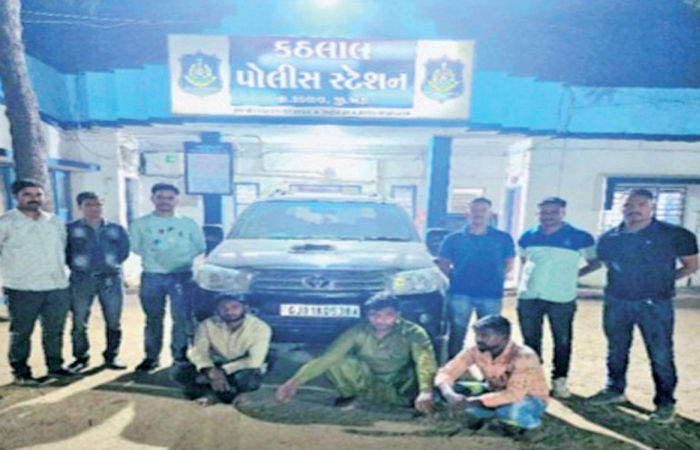 કઠલાલ સર્વેલન્સ ટીમ પેટ્રોલિંગમાં હતી તે દરમિયાન ટેકનિકલ સોર્સ અને ૩૦થી વધુ સીસીટીવી ફૂટેજની બારીકાઈથી તપાસ કરવામાં આવી હતી. જેમાં ચોરીમાં વપરાયેલી કાળા રંગની ફોર્ચ્યુનર ગાડીનો નંબર મેળવી બાતમીદારોને સક્રિય કરાયા હતા. બાતમીના આધારે પોલીસે અમદાવાદ-ઈન્દોર હાઈવે પર ખલાલ ચેકપોસ્ટ પાસેથી આરોપીઓને આંતર્યા હતા. પોલીસે ગુલામ સાબીર મહંમદ કાલુમિયા કુરેશી (રહે. જમાલપુર ખાટકીવાડ, દાણીલીમડા, અમદાવાદ),